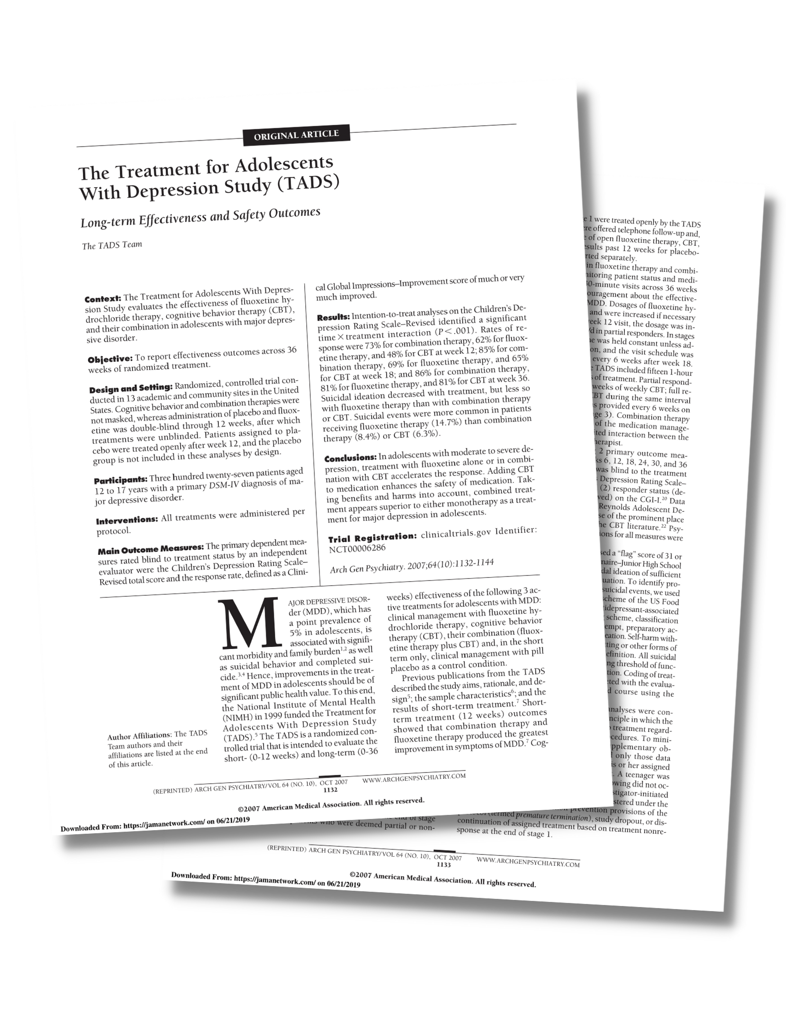 CAMS Study: Cognitive Behavioral Therapy, Sertraline, or a Combination in Childhood Anxiety